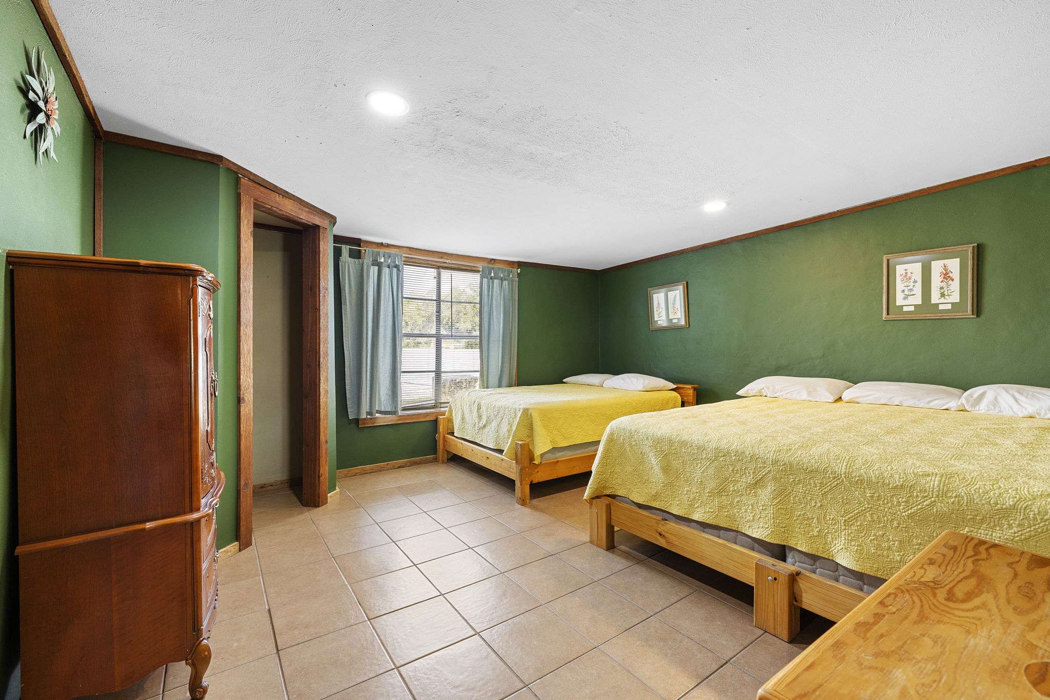 Peak Rate – May 15th – September 15th $800 Non-peak March 1st - May 14th $600 Winter Rate September 16th – February 28th $500 All major holidays, spring break will be charged at peak rate. Let the memories begin in this spacious 6-bedroom, 4-bath vacation home in the heart of Concan. Perfect for large families and groups, this home sleeps up to 28 guests. Gather for backyard cookouts around the barbecue pit, enjoy friendly games of horseshoes, or get the whole crew together for a lively round of volleyball. With plenty of space to relax and play, this home offers the perfect setting to create lasting traditions and unforgettable family moments.” Big Oak has 2 private bedrooms with 2 full beds each, 2 private bedrooms with 1 full bed & 1 king bed in each, 1 semi-private bedroom with 2 full beds, and 1 private bedroom with 2 sets of twin bunk beds, 4 full bathrooms, 1 full size futon in each of two living rooms, two fireplaces, full kitchen with two refrigerators and a full size upright freezer. Outside under a giant oak tree is a large rock patio which has fire pit, BBQ pits, and picnic tables. This large rock home is located near the Flip Flop Pit Stop convenience store, and the nature trails. The home has a volleyball area, basketball court, and horseshoe pits in the side yard. Horseshoes are furnished; you will need to bring a basketball and volleyball. To help keep the cost of your rental down, we do offer our guest the option to bring their own Linens and Towels. We do offer the option to rent them at an extra cost. If wanting to rent linens and towels for your stay, please allow us 3 weeks prior to arrival notice. Make note that we do have a limited supply and cannot guarantee we will have lines and towels readily available. Bedroom 1 - sleeps 4 - 2 double Bedroom 2 - sleeps 4 - 2 double Bedroom 3 - sleeps 4 - 1 double 1 king Bedroom 4 - sleeps 4 - 1 double 1 king Bedroom 5 - sleeps 4 - 2 double Bedroom 6 - sleeps 4 - 2 sets of twin bunks 2 double size futons one in each family room. What to Bring. LINENS: Bring linens and pillowcases, pillows, blanket/bedspread are provided. TOWELS: Bath towels, washcloths, kitchen towels and pool towels. CHAIRS: Bring folding or sack chairs to take to the river. The chairs at the rental should not be removed from the property. PAPER GOODS: Paper towels, toilet paper, napkins, paper plates, plastic cups, plastic ware. SOAP: Dishwashing, laundry and hygiene products BBQ: There are BBQ cooking utensils, but remember to bring charcoal/lighter/matches. Your kitchen is complete with dinnerware, silverware, glasses, basic cookware, coffee pot, microwave, pots & pans. We provide: • Coffee filters • Daily garbage pick up service * Starter pack 1 roll of toilet paper per bathroom, 2 kitchen trash bags, small dish soap, and small amount of dishwasher soap. We do not provide: • Tall kitchen bags • Paper towels • Hand soap • Shampoo • Dishwashing liquid/powder • Salt & pepper • Toilet Paper NOTE: If it is an all adult group (18 years +) then ALL GUESTS MUST BE 25 YEARS OR OLDER! This information is located on our “Printable Version” of the Policies & Procedures on our website.