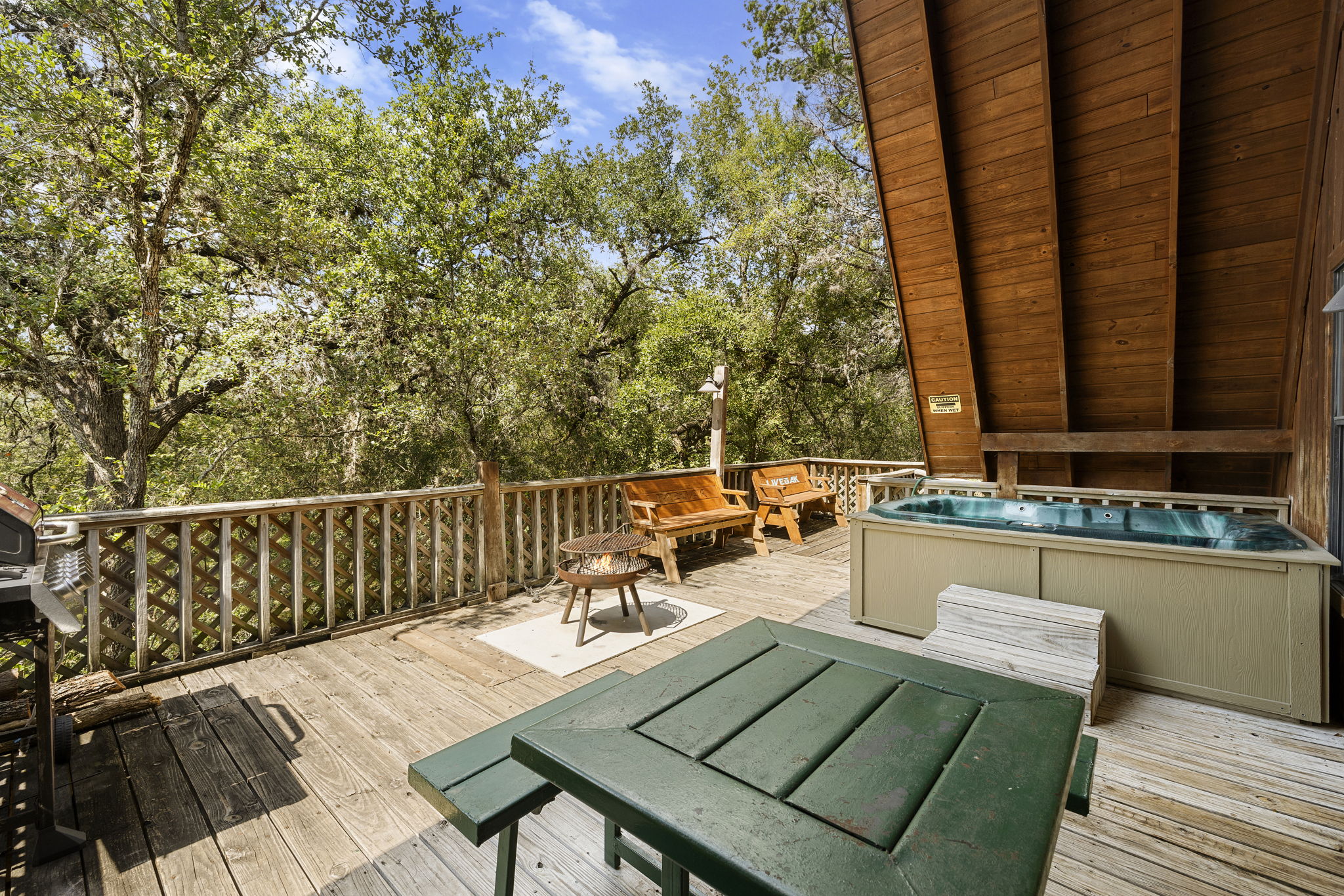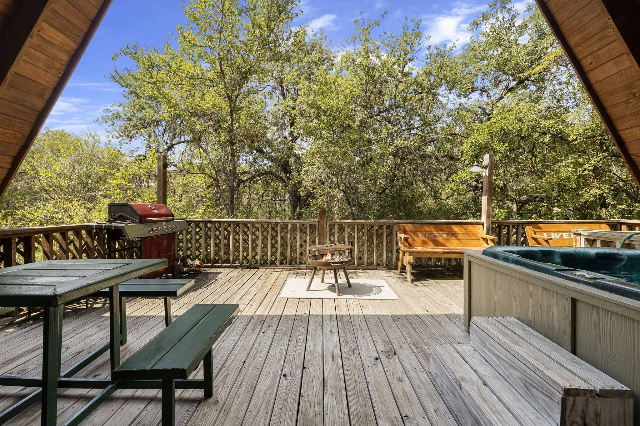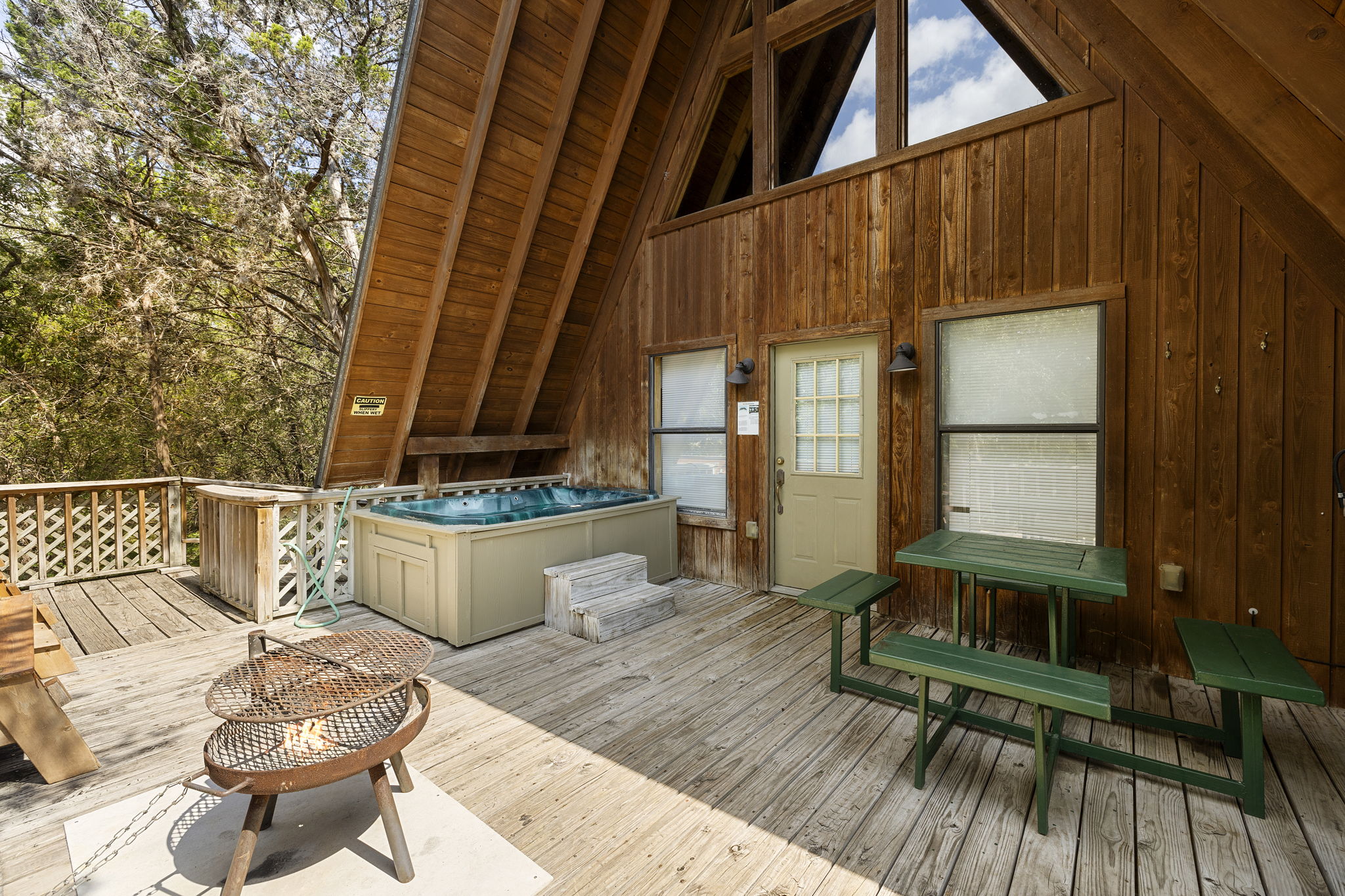 Peak Rate – May 15th – September 15th $235 Non-peak March 1st - May 14th $180 Winter Rate September 16th – February 28th $160 All major holidays, spring break will be charged at peak rate. Hidden behind a private gate, this enchanting two-story A-frame is a quiet haven designed for connection and calm. Upstairs, a bedroom welcomes you with a glowing brass king-size bed, while downstairs, a cozy futon sits beside the sun filled window perfect for cuddling up as the evening drifts in. The kitchen is ideal for cooking together, sharing a glass of wine, and savoring slow, meaningful moments. Step through the back door and onto a spacious, private deck, partly covered for all-weather comfort. Let time slip away as you soak in the hot tub under the stars, share quiet conversations by the fire pit, or enjoy a candlelit dinner at the picnic table. A gas grill stands ready for sunset meals, wrapped in the soft sounds of nature. Beyond the deck, deer often wander through the trees, a gentle reminder that you’re somewhere truly special. Originally built as a “Sunday House” for the boss and his beloved, Live Oak now welcomes you to make amazing memories.